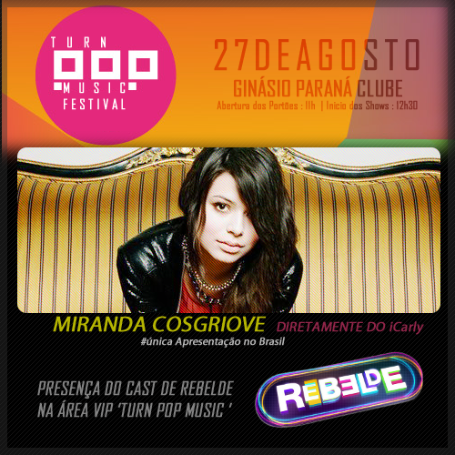 Miranda estará aqui no Brasil em Agosto para se apresentar no evento “Turn Pop Music Festival” no dia 27 de Agosto.