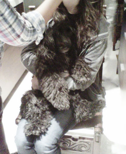 Esta é uma foto do meu amiguinho. Ela gosta de sentar no meu colo enquanto eu faço o meu cabelo e maquiagem